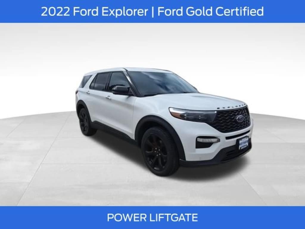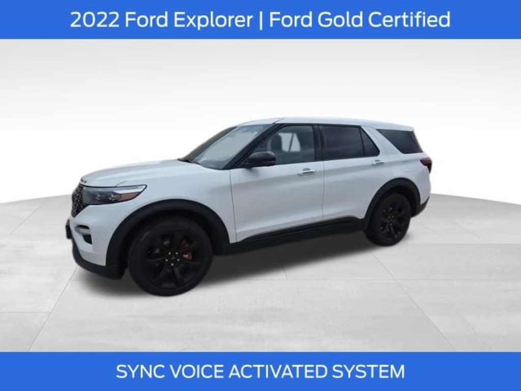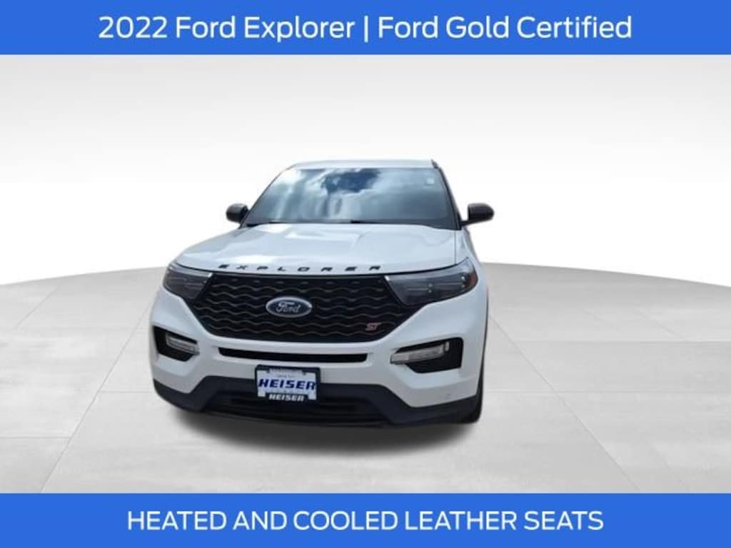 Star White Metallic Tri-Coat 2022 Ford Explorer REVERSE SENSING SYSTEM, POWER LIFTGATE, HEATED AND COOLED LEATHER SEATS, SYNC VOICE ACTIVATED SYSTEM, BLIND SPOT MONITORING, REMOTE STARTER, REAR VIEW CAMERA, REMOTE KEYLESS ENTRY, FORD CO-PILOT 360, TECHNOLOGY PACKAGE, COLD WEATHER PACKAGE, VOICE ACTV NAVIGATION SYSTEM, PANARAMIC VISTA ROOF, HEATED STEERING WHEEL, 4WD, 10.1" LCD Capacitive Portrait Touchscreen, 110V/150W AC Power Outlet, 2 Additional Speakers, 20" Machined Aluminum w/Painted Pockets Wheels, 360-Degree Camera w/Split View, Auto-Dimming Rearview Mirror (Interior), Equipment Group 401A, Ford Co-Pilot360 Assist+, Front Parking Sensors, Front Rain-Sensing Wipers, Hands-Free Foot-Activated Liftgate, Heated door mirrors, Heated front seats, Heated steering wheel, Leather Htd/Ventilated Sport Captain's Chairs, Leather steering wheel, Memory Driver's Seat, Performance Front & Rear Brakes, Power Tilt/Telescoping Steering Column, Premium Technology Package, Radio: B&O Sound System by Bang & Olufsen, Remote keyless entry, Reverse Brake Assist, Second Row Heated Seats, Sideview Mirrors w/Gloss Black Caps, ST High Package, ST Street Pack, Third Row PowerFold (Folds Flat), Twin Panel Moonroof, Universal Garage Door Opener (UGDO), Wireless Charging Pad.