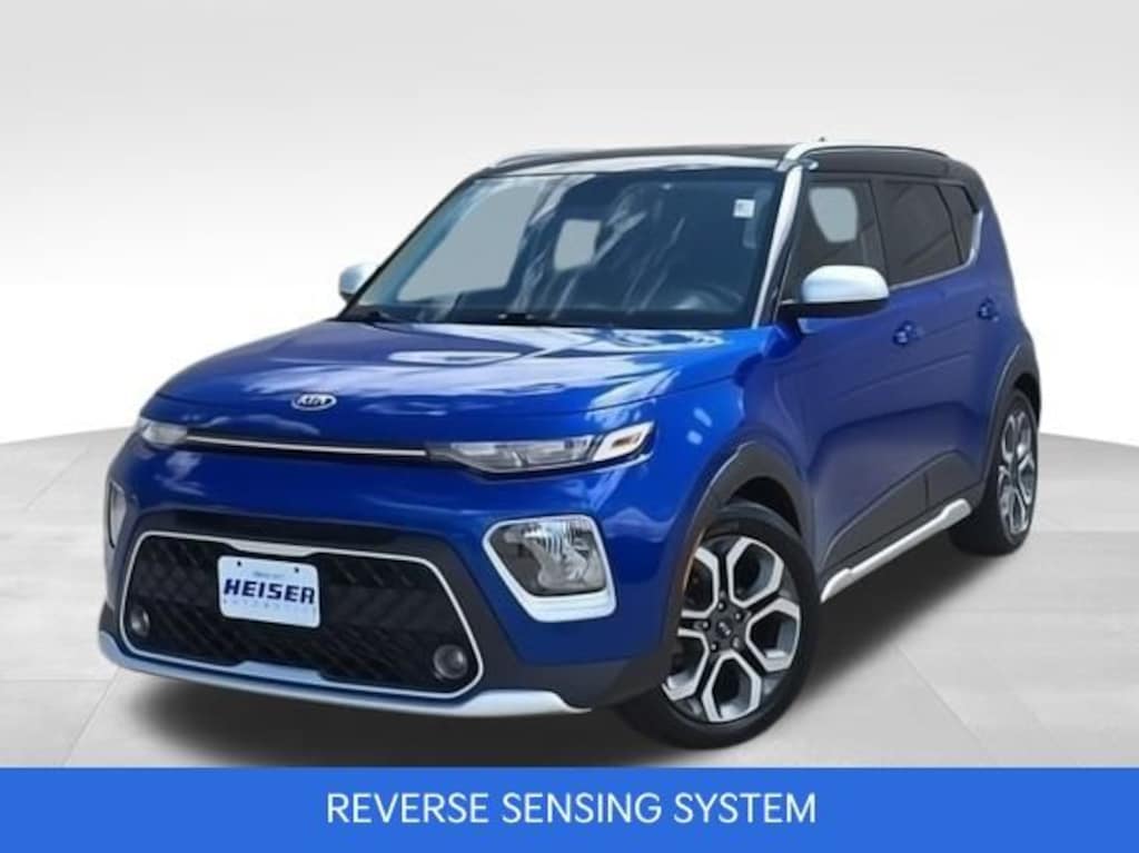 Neptune Blue/Black Roof 2021 Kia Soul CARFAX One-Owner. 28/33 City/Highway MPG REVERSE SENSING SYSTEM, SYNC VOICE ACTIVATED SYSTEM, BLIND SPOT MONITORING, REAR VIEW CAMERA, REMOTE KEYLESS ENTRY, LANE KEEPING SYSTEM, Wheels: 18" x 7.5 Alloy.
