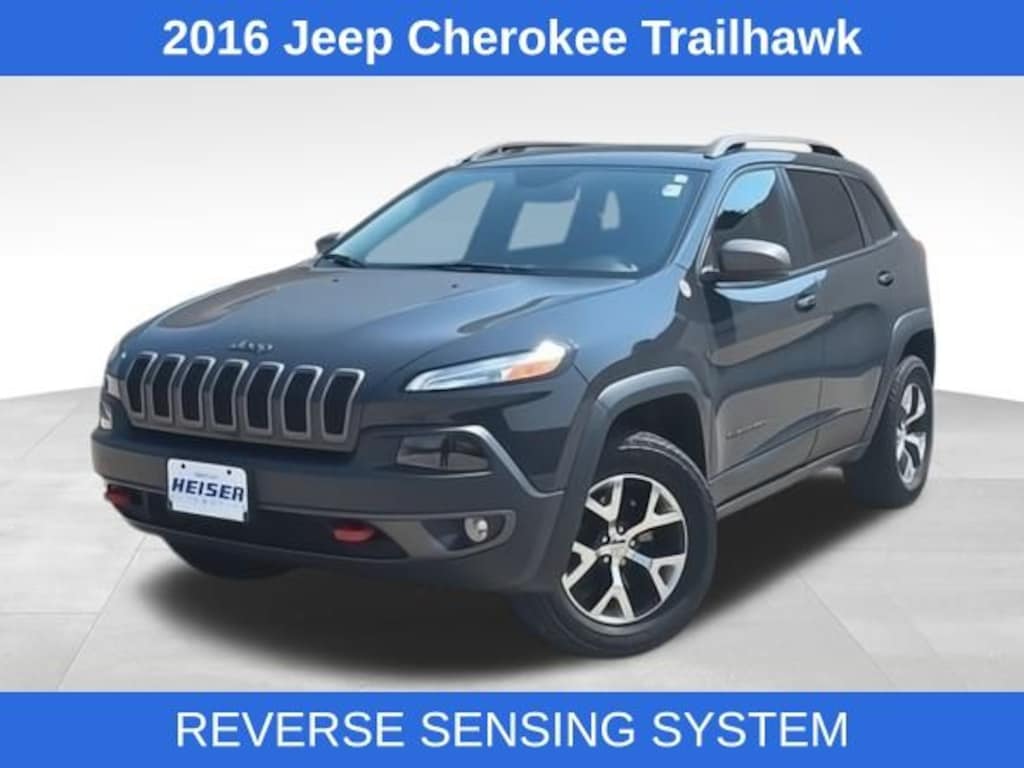 Rhino Clearcoat 2016 Jeep Cherokee CARFAX One-Owner. Clean CARFAX. 19/26 City/Highway MPG REVERSE SENSING SYSTEM, POWER LIFTGATE, HEATED AND COOLED LEATHER SEATS, SYNC VOICE ACTIVATED SYSTEM, BLIND SPOT MONITORING, REMOTE STARTER, REAR VIEW CAMERA, REMOTE KEYLESS ENTRY, VOICE ACTV NAVIGATION SYSTEM, POWER MOONROOF, LANE KEEPING SYSTEM, Accent Color Exterior Mirrors, Air Conditioning ATC w/Dual Zone Control, All-Season Floor Mats, Cold Weather Group, Comfort/Convenience Group, Engine Block Heater, Exterior Mirrors Courtesy Lamps, Exterior Mirrors w/Heating Element, Exterior Mirrors w/Memory, Exterior Mirrors w/Supplemental Signals, GPS Navigation, Heated Front Seats, Heated Steering Wheel, Humidity Sensor, Jeep Rack Off Road Accessory Kit, Leather Interior Group, Leather Trimmed Bucket Seats, Passive Entry/Keyless Go, Power 4-Way Driver Lumbar Adjust, Power 8-Way Driver Seat, Power Heated Mirrors, Power Liftgate, Power Multi-Function Fold Away Mirrors, Premium Air Filter, Premium Leather Trimmed Bucket Seats, Quick Order Package 27E, Radio/Driver Seat/Exterior Mirrors Memory, Rear-View Auto-Dimming Mirror w/Microphone, Remote Proximity Keyless Entry, Remote Start System, Security Alarm, Universal Garage Door Opener, Ventilated Front Seats, Ventilated/Heated Seat Group, Windshield Wiper De-Icer.